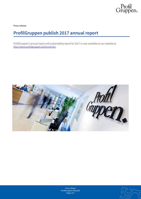 ProfilGruppen’s annual report and sustainability report for 2017 is now available on our website at http://www.profilgruppen.se/koncernen.