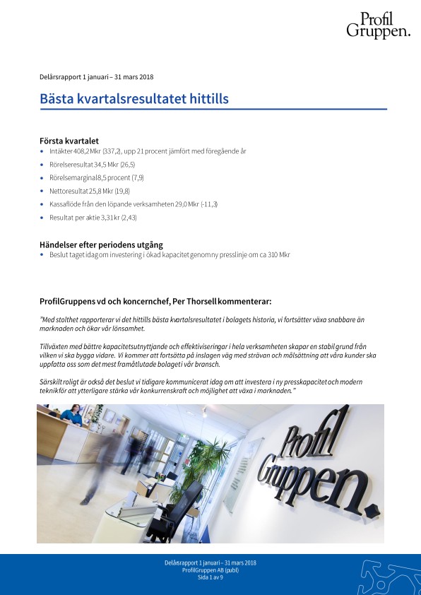 Särskilt roligt är också det beslut vi tidigare kommunicerat idag om att investera i ny presskapacitet och modern teknik för att ytterligare stärka vår konkurrenskraft och möjlighet att växa i marknaden.”