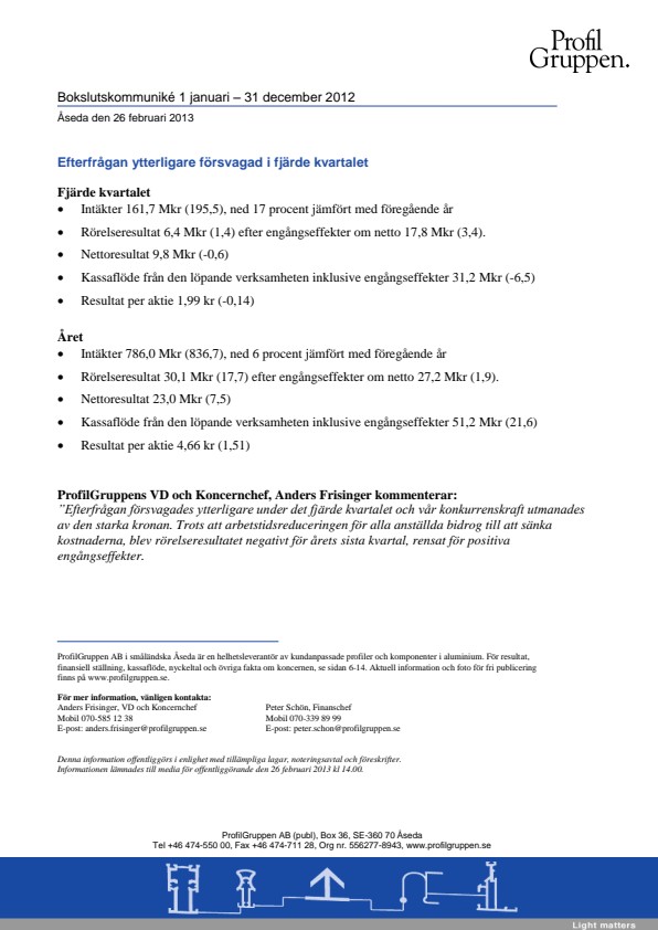 ProfilGruppens VD och Koncernchef, Anders Frisinger kommenterar: