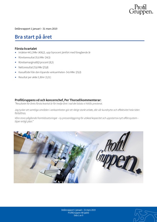 ProfilGruppens vd och koncernchef, Per Thorsell kommenterar: