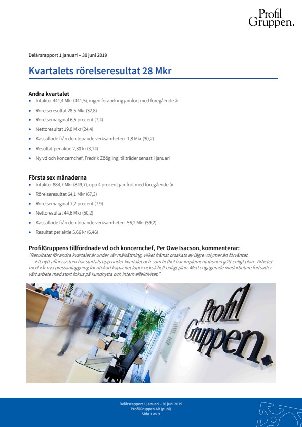 ProfilGruppens tillfördnade vd och koncernchef, Per Owe Isacson, kommenterar: