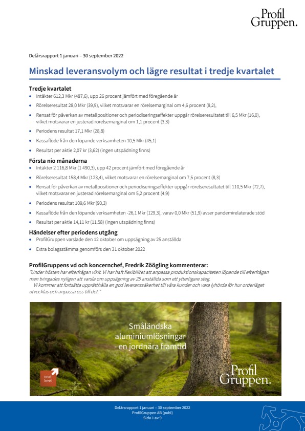 ProfilGruppens vd och koncernchef, Fredrik Zöögling kommenterar: