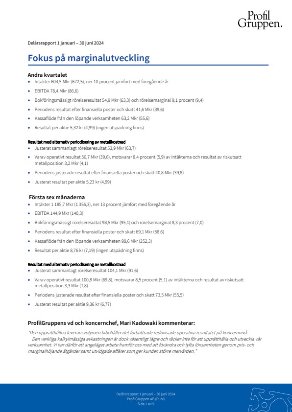 ProfilGruppens vd och koncernchef, Mari Kadowaki kommenterar: